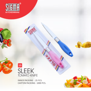 Elevate your culinary experience with the Sigma Kitchen Ware Sleek 2-Piece Knife Set, a combination of elegance and functionality crafted for the discerning chef. Whether you are a professional or a home cooking enthusiast, this knife set is designed to handle your cutting tasks with precision and ease  (ORDER ACCEPTED ONLY FOR CARTOON PACKAGING 600 PIECES) (INNER PACKAGING CONTAINS 15 PIECES)